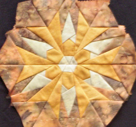 4 Dear Jane blokken. Met de klok mee ... F2 - kaleidoscope - A8 - Florence Nightingale - F8 - Church window en F10 - Potholder.And last... the October crystal of Ula Lenz.
