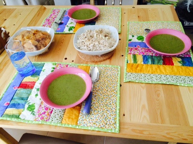 Een kerstpanel gequilt en 6 placemats gemaakt voor een vriendin.
